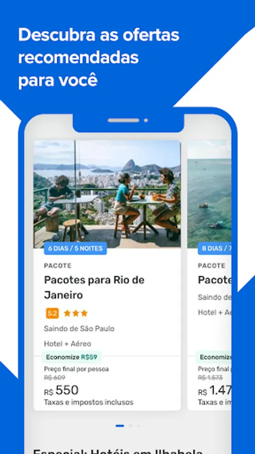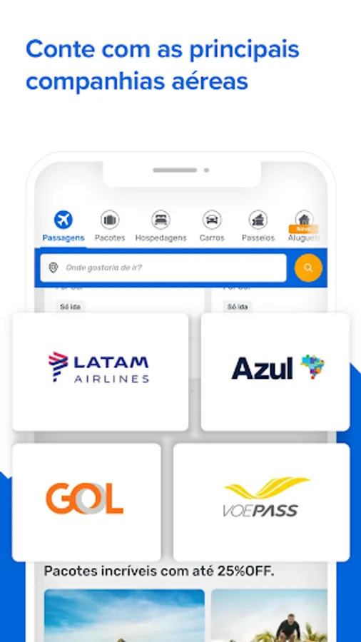 Whether in Brazil or the world, here your trip is with guaranteed savings. Take advantage of promotional airline tickets to discover your dream destination. Travel with the best companies on the market and search for your plane ticket directly from the application, which is full of cheap air tickets for your vacation trip.