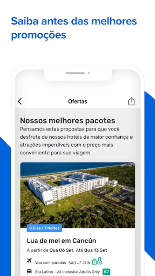 Here you will find the best options for airline tickets, travel packages, hotels, resorts, car rentals, tours, Disney tickets, airport transfers, travel insurance and much more. Before travelling, review your booking details in My Trips.