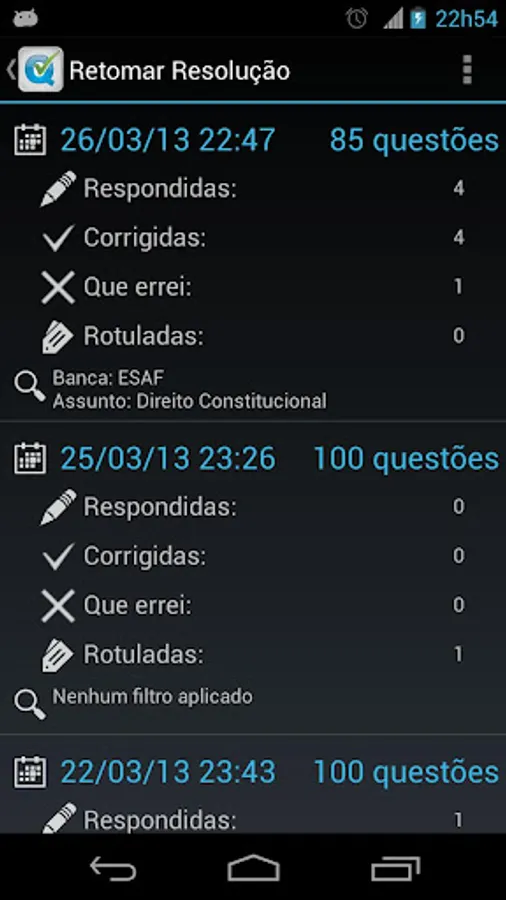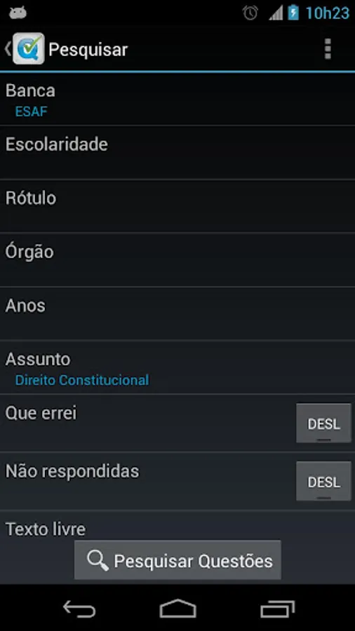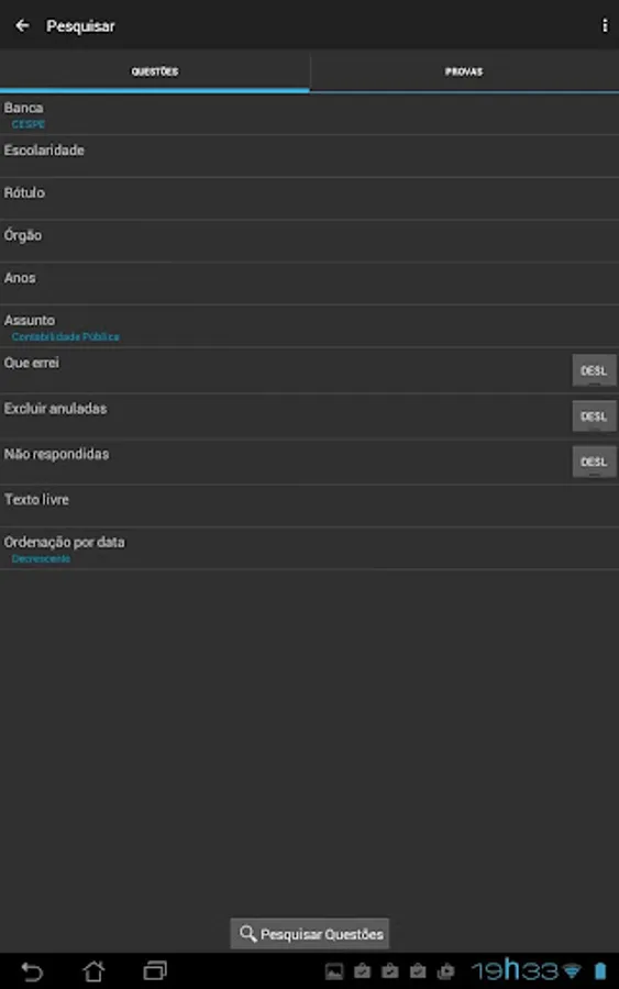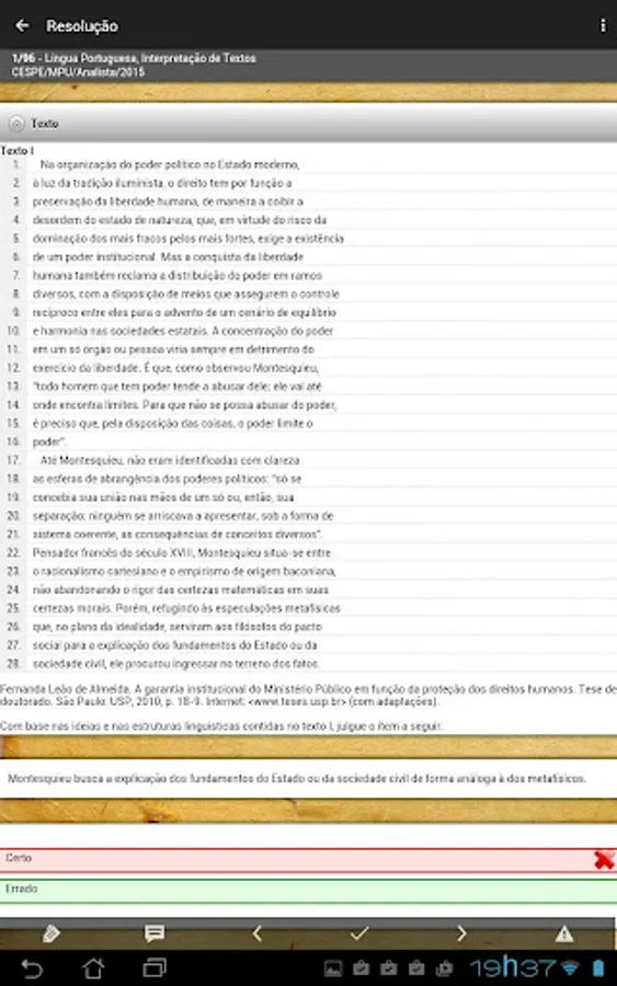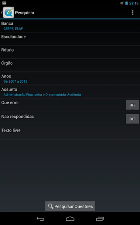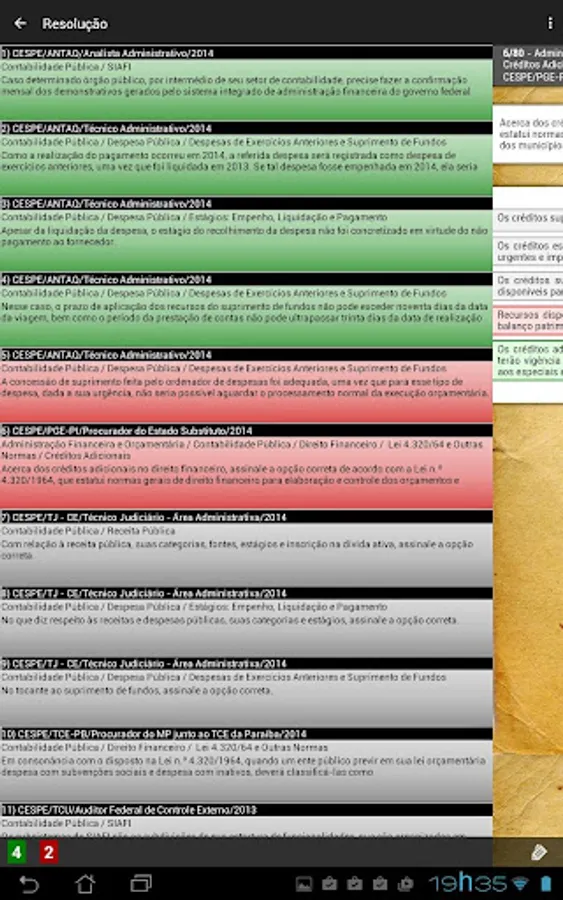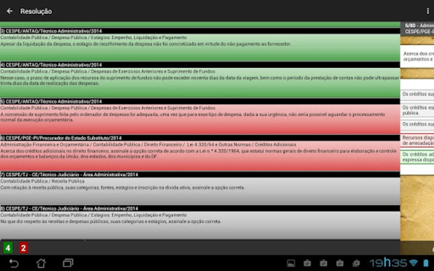 The current issues base has about 24,000 questions from banks such as ESAF, Cespe and FCC, as well as competitions of the country's main public bodies, such as TCU, PF, Chamber of Deputies, Courts, among others.
