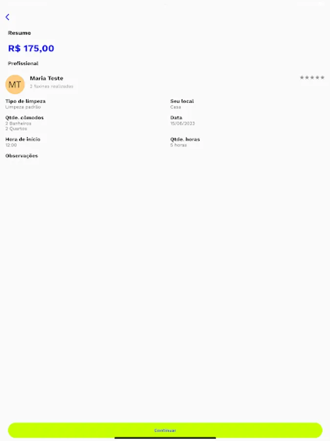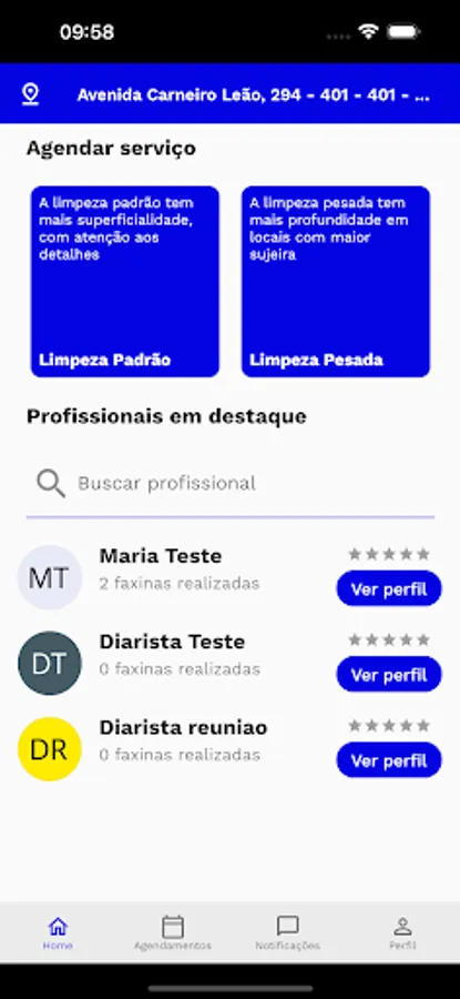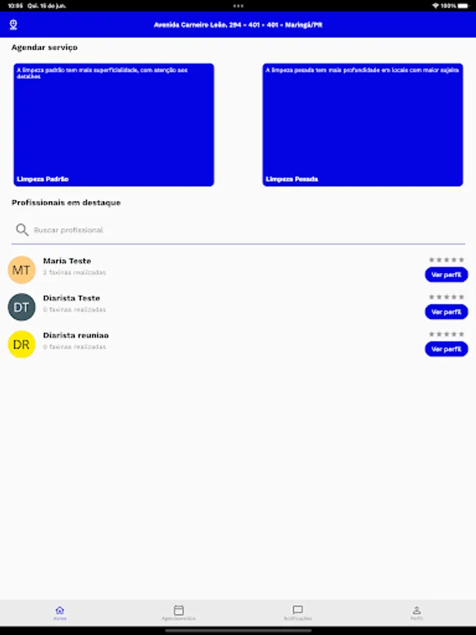 iLimp is an application that aims to provide a domestic and business cleaning service with quality, organization and control. The service provider has a professional profile where its schedule is available in real time so that users can schedule their daily cleaning, divided into heavy cleaning and standard cleaning, with the possibility of adding footage, number of rooms, bathrooms and observations if the user wants something specific in some area. The client will be able to rate the professional up to 5 stars and add recommendations with comments. Payment method can be made in PIX or credit card.