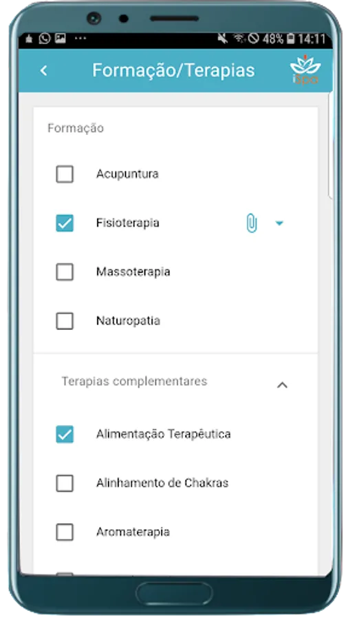 To register for the application, simply download the "iSpa for Professionals" application - by entering your email and password. Then you can enter the application and complete your registration. Upon registration, we will ask for a photo of your diploma - after checking the training, your registration will be released. We will not ask for photos of certificates of free courses (complementary therapies) - only of the diploma of your training.