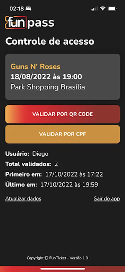 Application used by FunPass employees to validate tickets for events organized by FunPass.