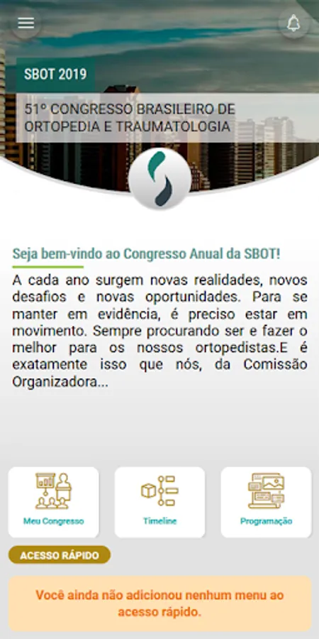 Our commitment is to offer the best to our congressmen. After all, it will be at the annual SBOT congress that the 13 Orthopedics and Traumatology committees will meet in a new model of scientific program, with rooms exclusive to all subspecialties from the beginning to the end of the congress.