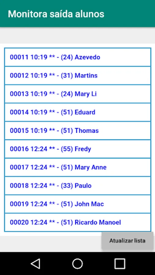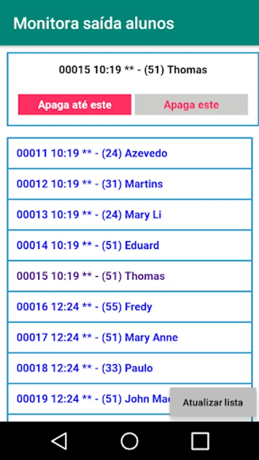 This app works in conjunction with the "Avisa Escola Brasil" App and aims to improve teachers' and instructors' control of students' withdrawal, thus reducing traffic jams on the outgoing streets and the outskirts of schools.