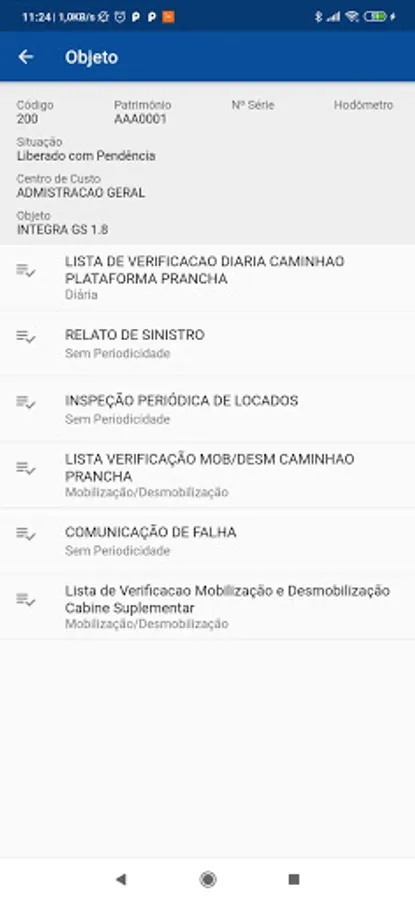 To facilitate the application of checklists, the application has QRCODE’s reading functionality for easy identification of objects.