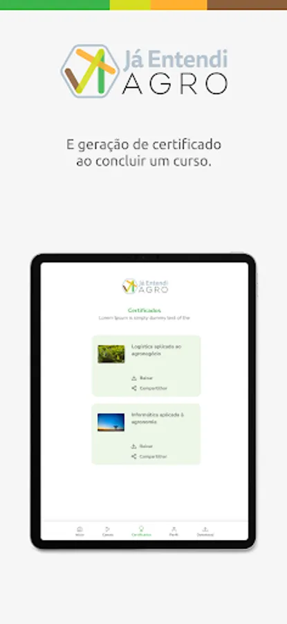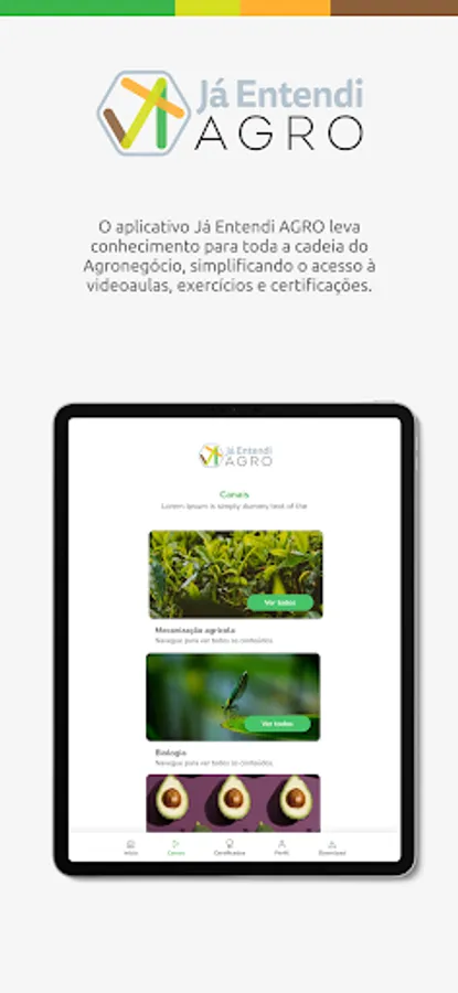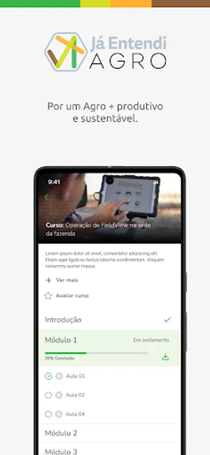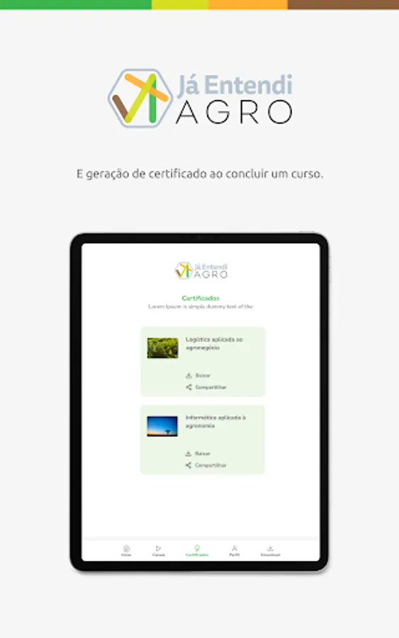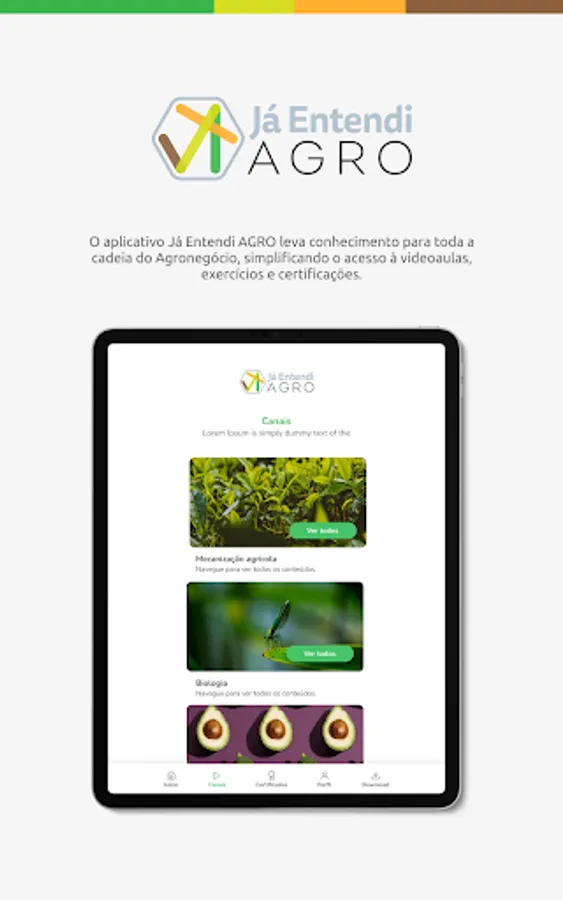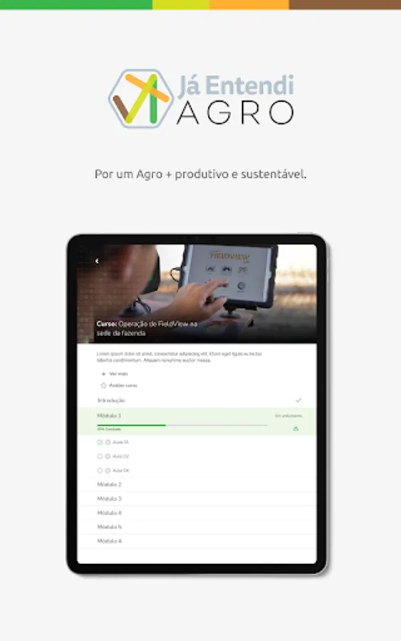 The Já Comprente AGRO application brings knowledge to the entire Agribusiness chain, simplifying access to video lessons, exercises and certifications. Allows anytime, anywhere access, online and offline. For a productive and sustainable Agro +.