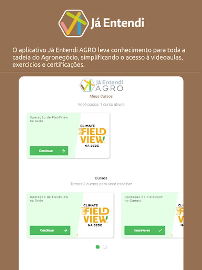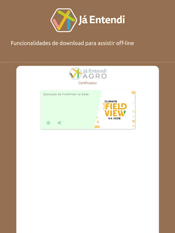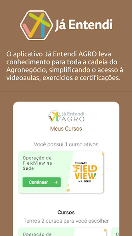 The Já Compre AGRO app takes knowledge to the entire Agribusiness chain, simplifying access to video classes, exercises and certifications. Allows anytime and anywhere access, online and offline. For a productive and sustainable Agro+.