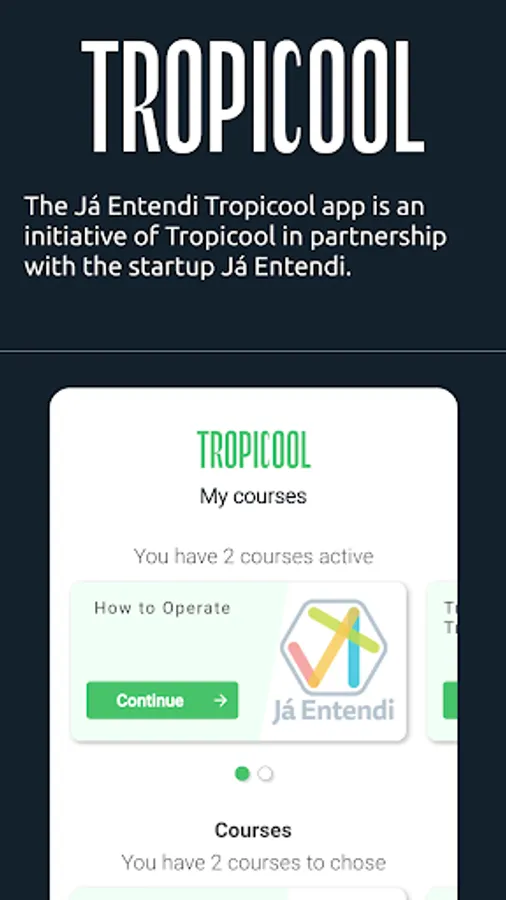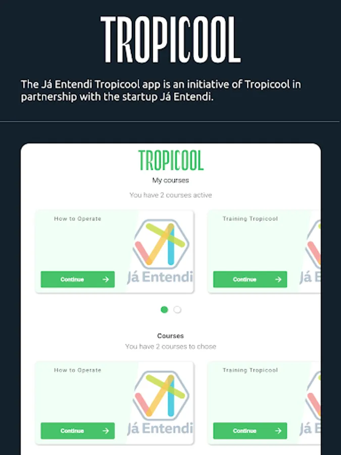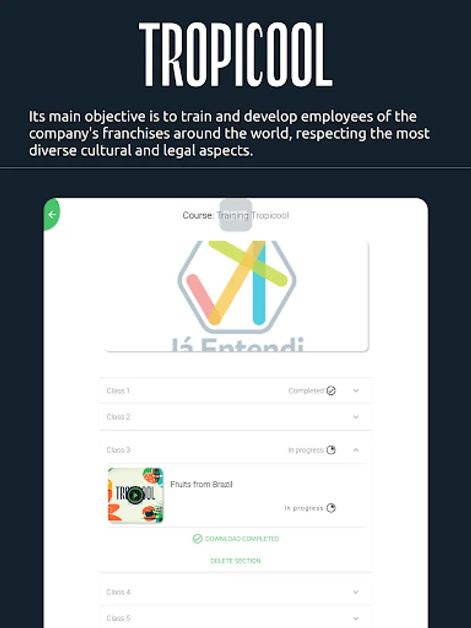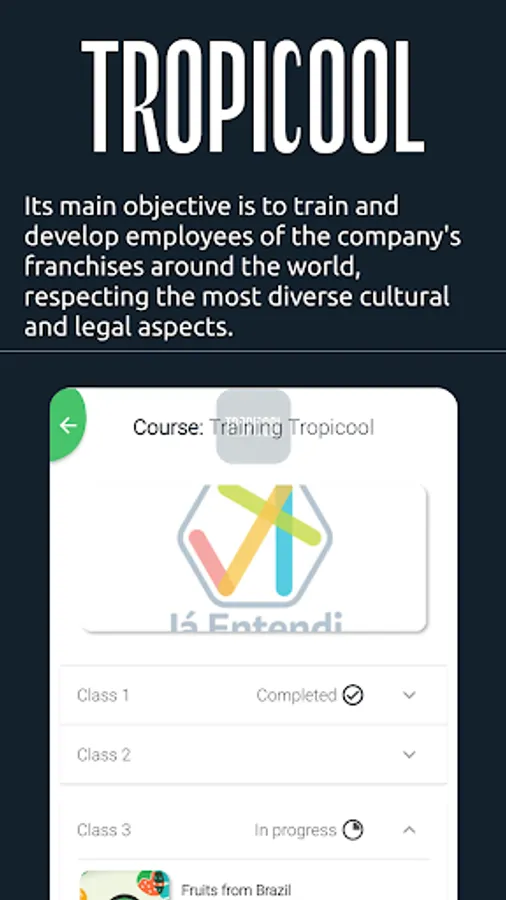 The Já Entendi Tropicool app is an initiative of Tropicool in partnership with the startup Já Entendi. Its main objective is to train and develop employees of the company's franchises around the world, respecting the most diverse cultural and legal aspects.