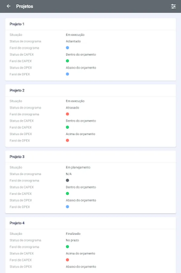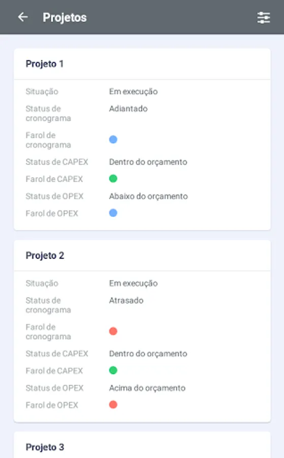 3) Project details such as status, trends, risks and more