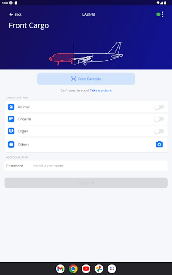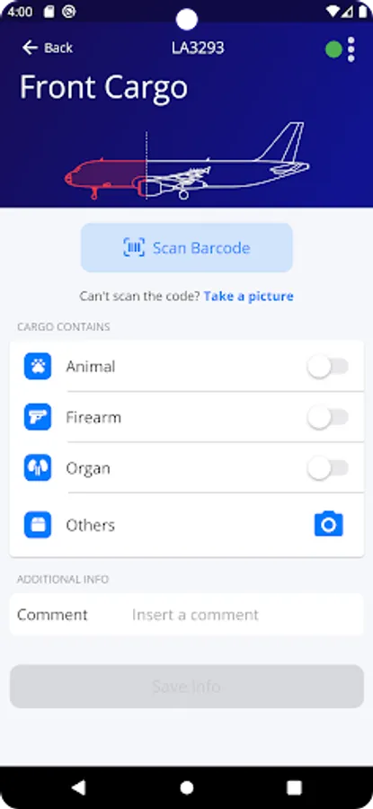 Includes cargo inspection functionalities and communication between the aircraft and ground assistance.