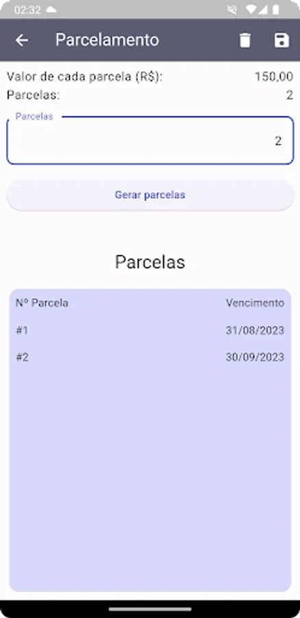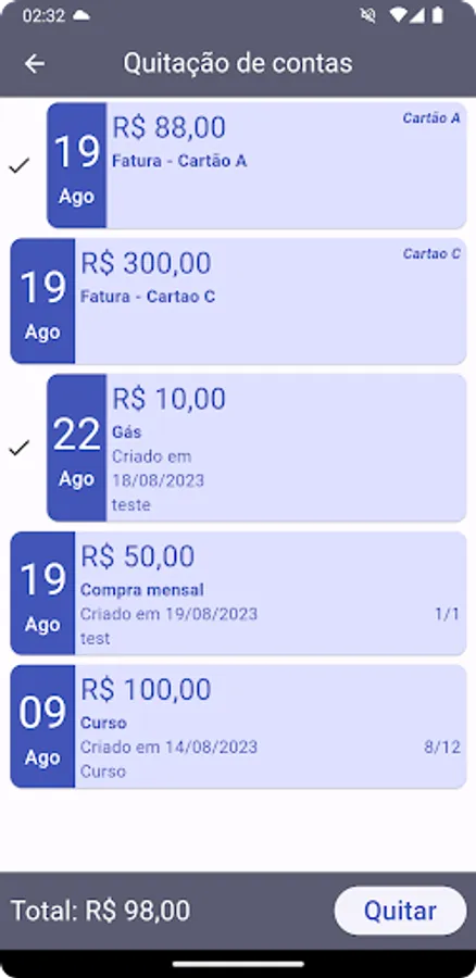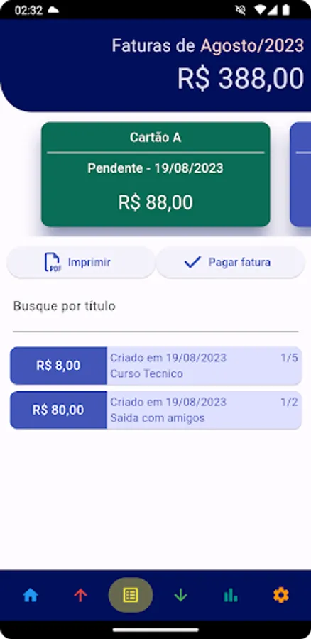 - Display of the total expense of the selected month, as well as the total amount paid and pending