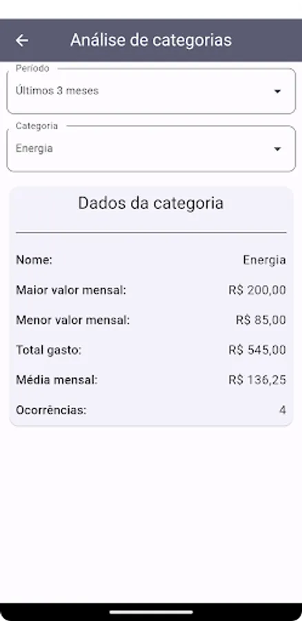 - Still in the development phase, it has the "Expense analysis by category" report, where it is possible to obtain more detailed data on a certain category in a certain period.