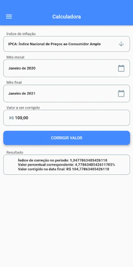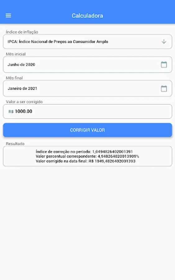 Monetary Correction performs the correction of an amount in relation to inflation occurred in a given period.