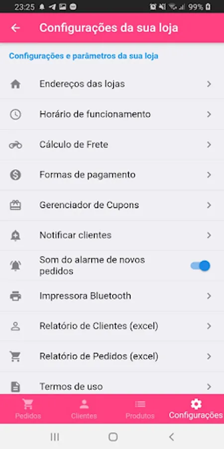App directed to the Manager for product management, customer, orders, and customer application settings