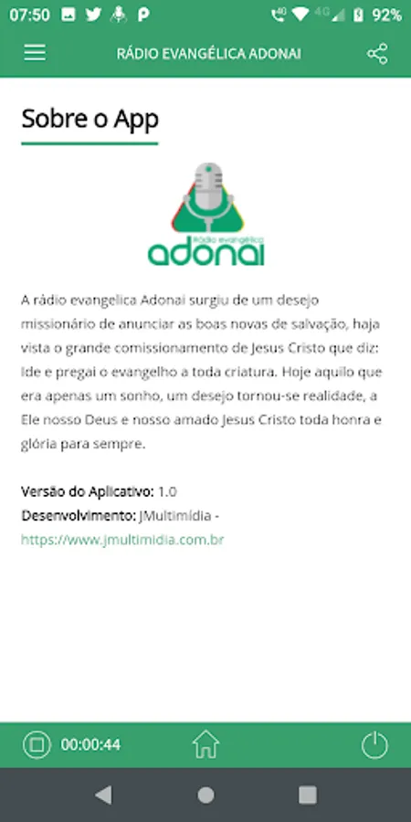 Radio Evangelica Adonai arose from a missionary desire to announce the good news of salvation, in view of the great commissioning of Jesus Christ who says: Go and preach the gospel to every creature.