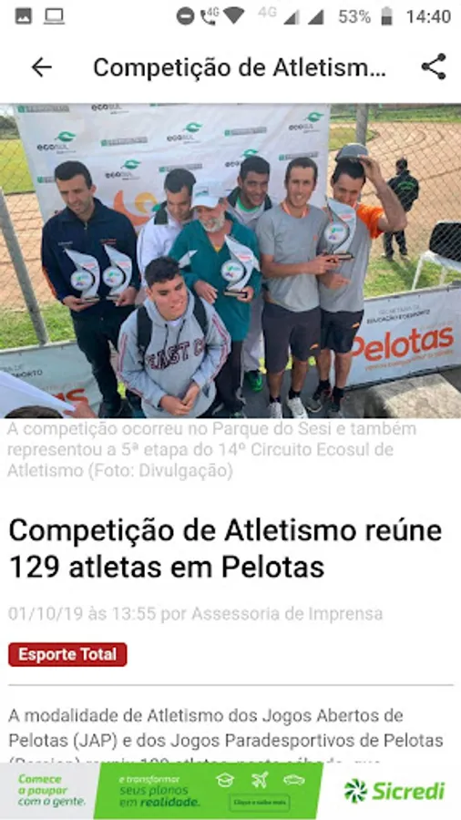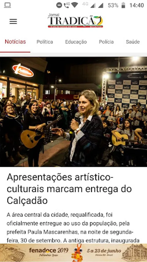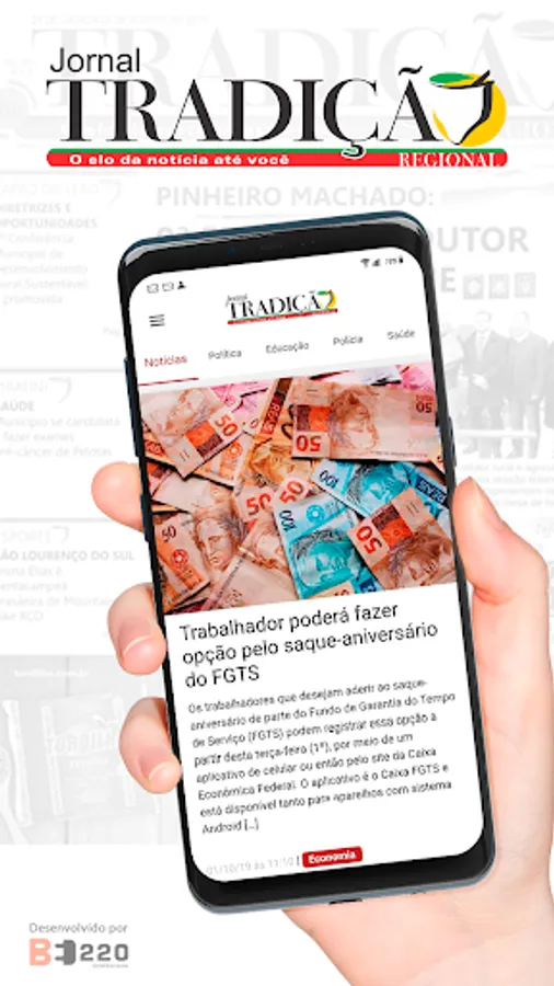 News application of Jornal Tradição Regional, based in Pelotas (RS) and regional coverage in 15 more municipalities in the South Zone: