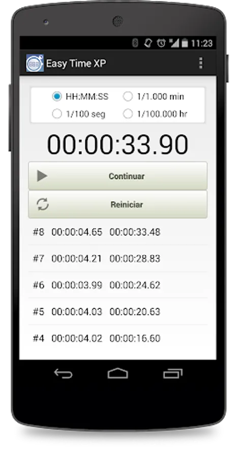 - Automatic conversion of recorded time according to the selected scale, even after the end of timing