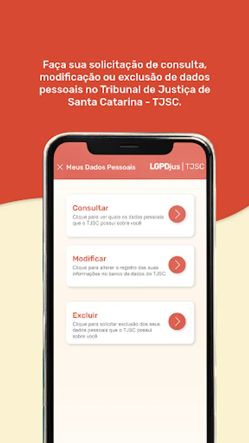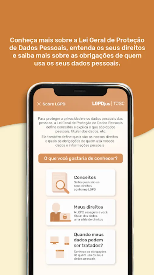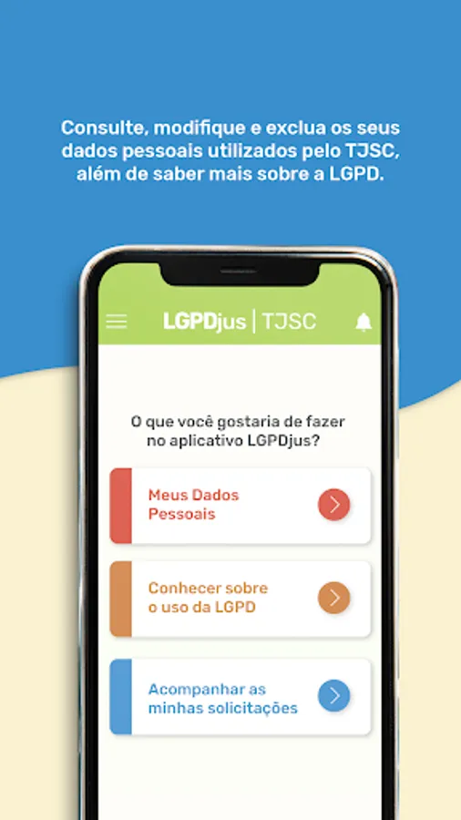 The LGPDJus application allows opening and monitoring of requests regarding the General Law for the Protection of Personal Data (LGPD) at the TJSC.