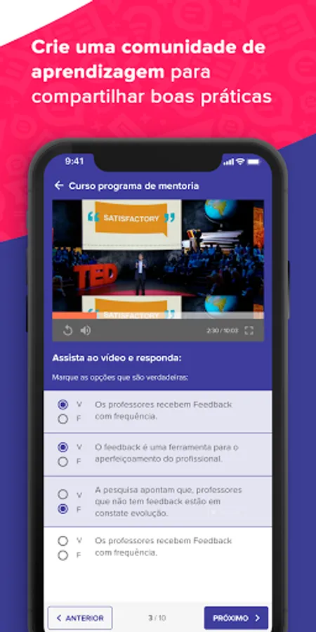 With Educate Formações' solutions, users can create a unique process for the continuous training of their teachers. Identify evidence from classroom observation, offer feedback, mentoring and coaching to teachers and create a knowledge network to share your school's best practices.