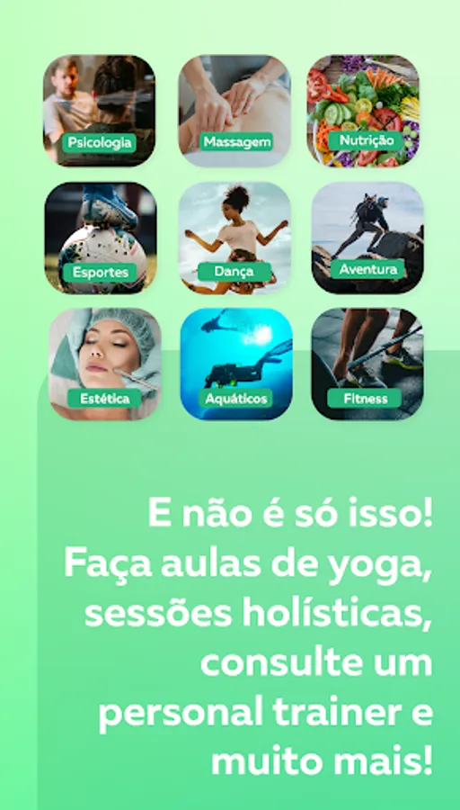 Gym plans, consultations with psychologists, nutritionists, schedule yoga sessions, holistic, practice sports, adventures, book massages, take care of your health by scheduling exams, dance classes and much more!