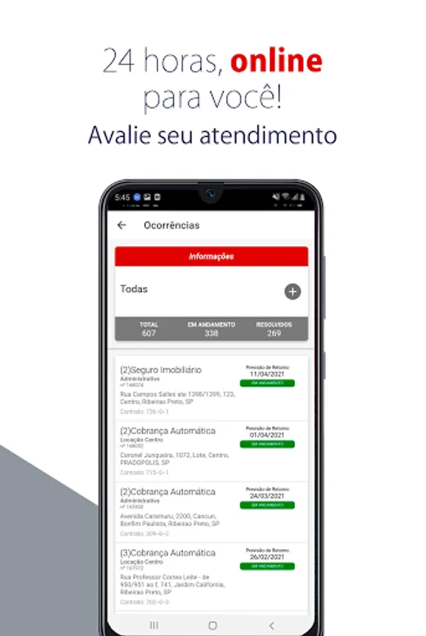 Access to rent analytics, bill of exchange, documents, occurrences, registration changes, among others.