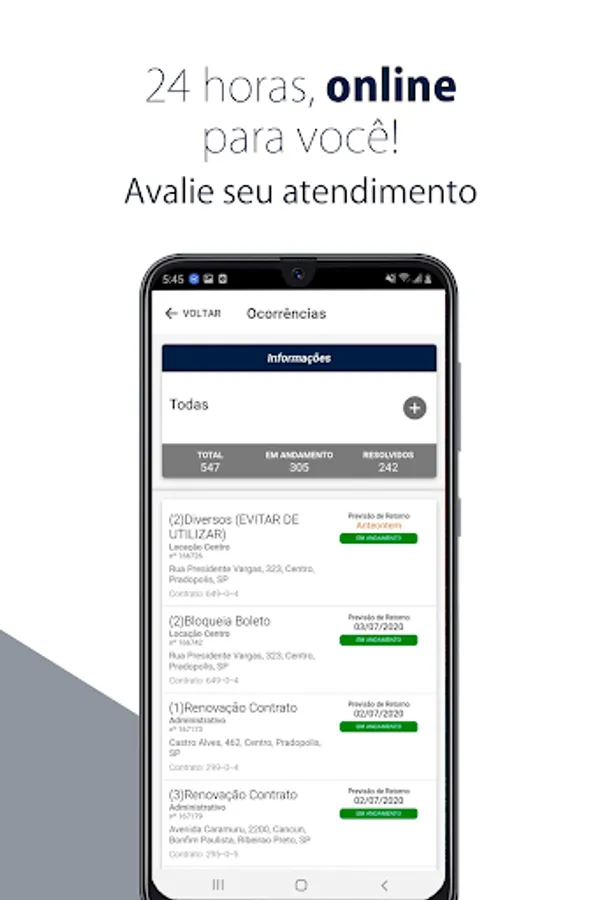 Access to the rent analytics, bill, documents, occurrences, registration changes among others.