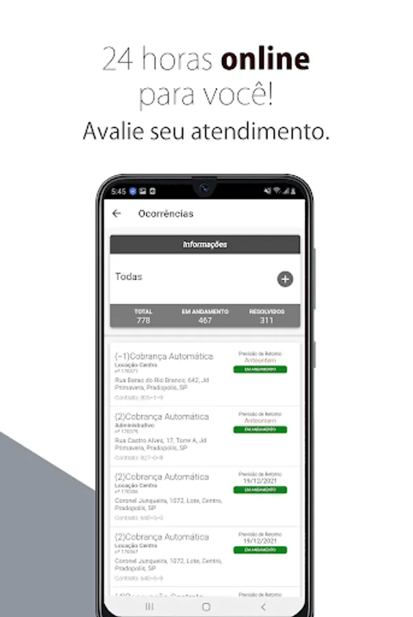 Access to rent analytics, bills of exchange, documents, occurrences, registration changes, among others.