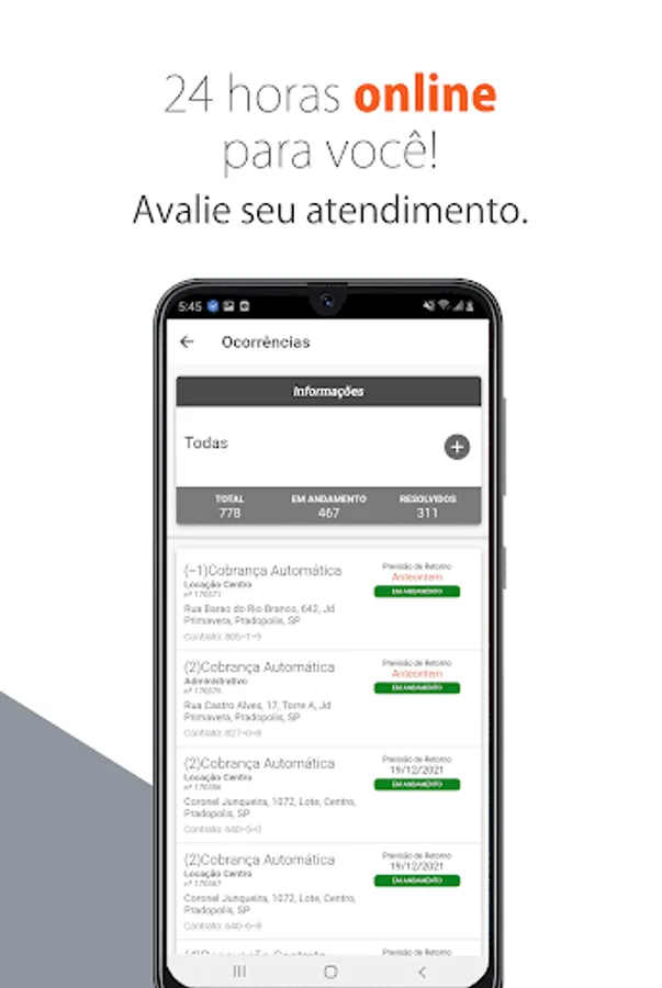 Access to rent analytics, bills of exchange, documents, occurrences, registration changes, among others.
