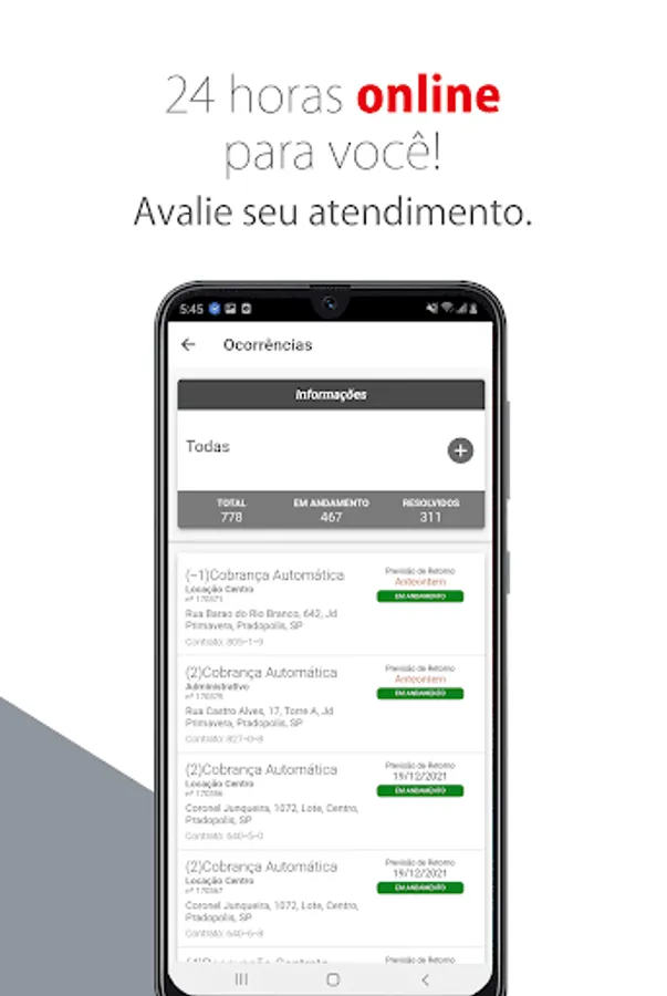 Access to rent analytics, bills of exchange, documents, occurrences, registration changes, among others.