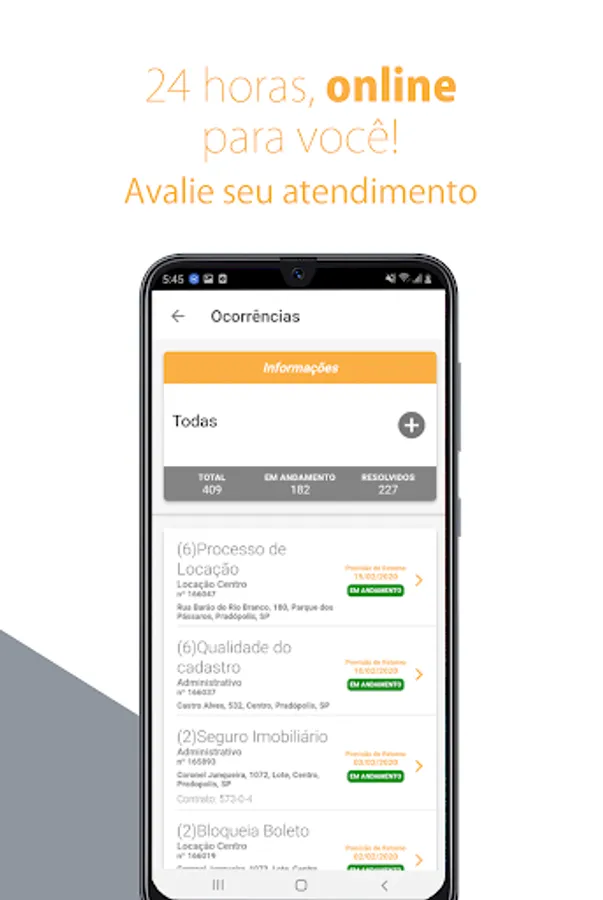 Access to rent analytics, bill of exchange, documents, occurrences, registration changes, among others.