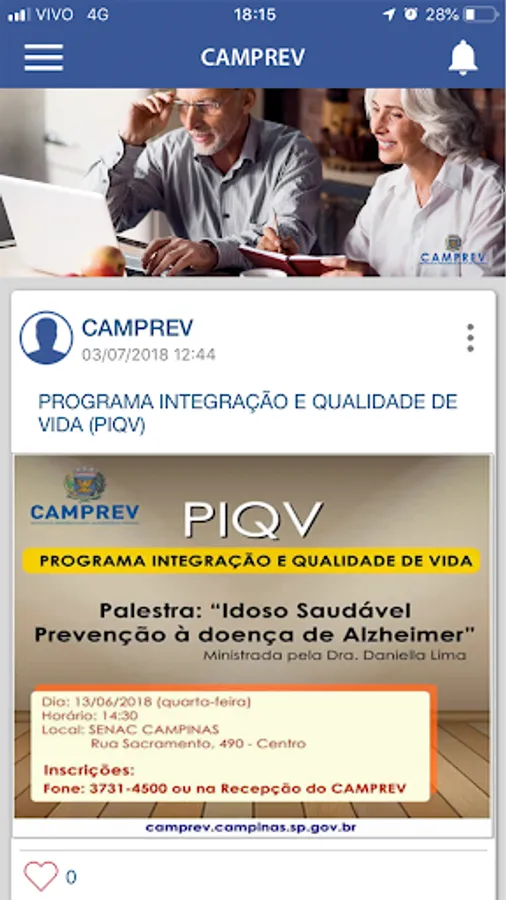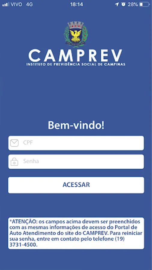 Application for retirees and pensioners of the Institute of Social Security of the Municipality of Campinas - CAMPREV. Allows the consultation of the statement of payment and submission of documents of the re-registration.