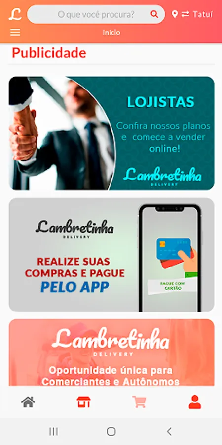 Lambretinha Delivery, make your purchases from any segment (Stores, Supermarkets, Pharmacies, Construction Materials, Artisanal Products and everything else), with Delivery, Pickup and Delivery Scheduling options.
