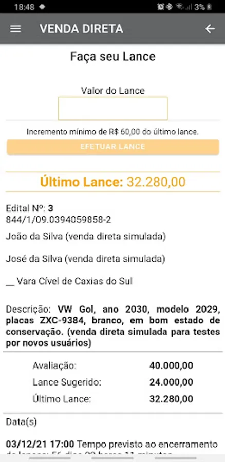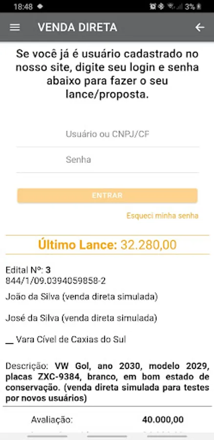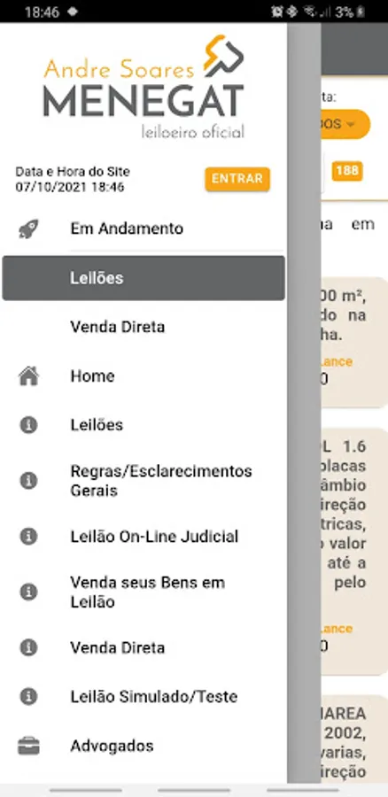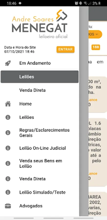 Application for the dissemination, submission of bids, registration of bidders, monthly newsletters and access to auction notices carried out by the Official Auctioneer André Soares Menegat.