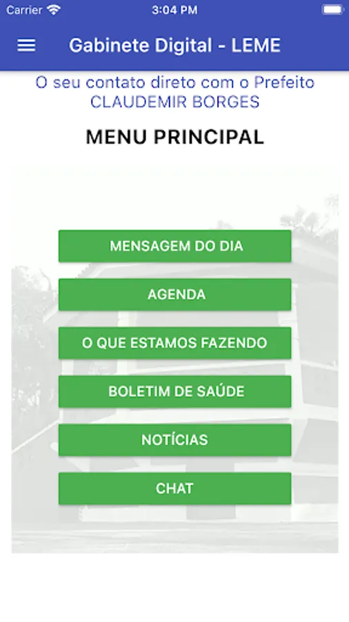 This application allows the citizen to communicate directly with the mayor of Leme. In it you get to know the news from the city hall, bulletins, agendas, messages from the mayor and you can also establish a direct chat with him for complaints, suggestions, criticisms and compliments.
