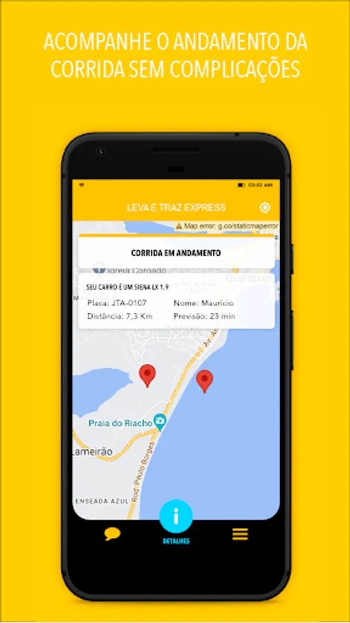 Our application allows you to call one of our motorcycle taxis and follow the vehicle's movement on the map, being notified when it is at your door.