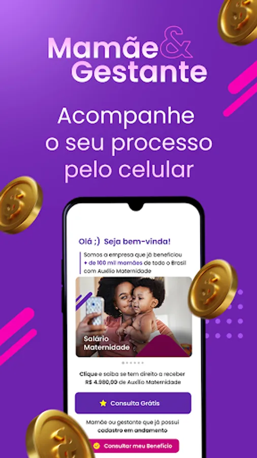 Developed for mothers and pregnant women from all over Brazil, in this APP you can request and track your Maternity Salary, without leaving home!