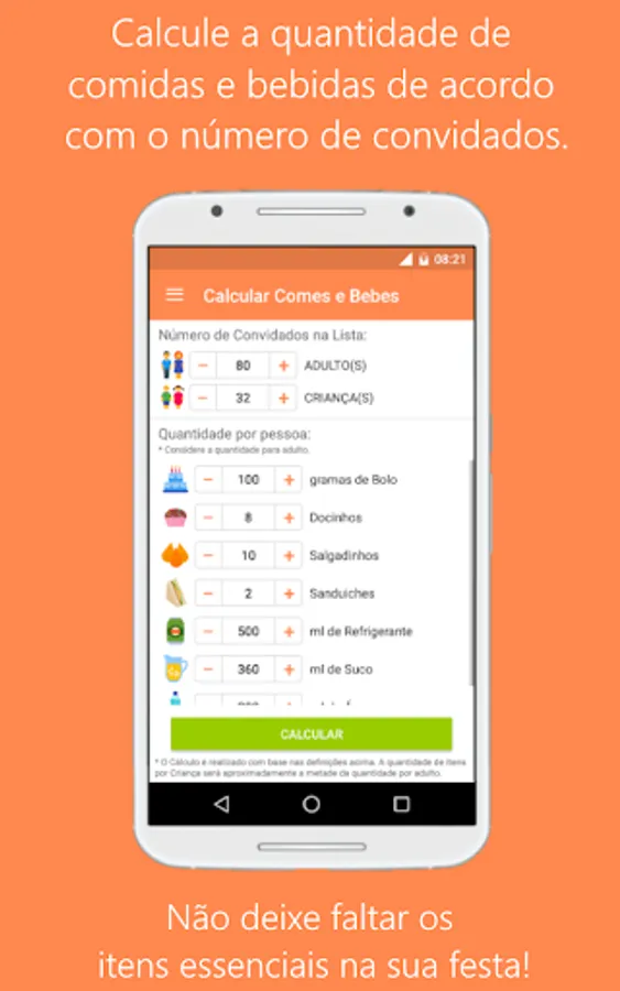 • Calculate the amount of food and drink according to the number of guests.