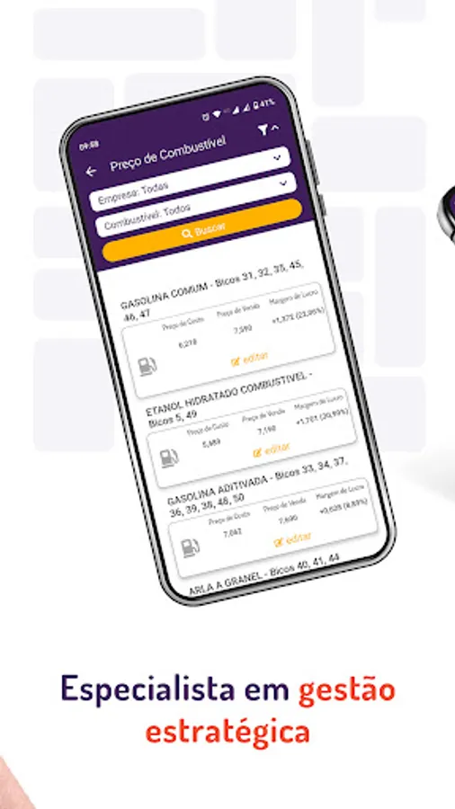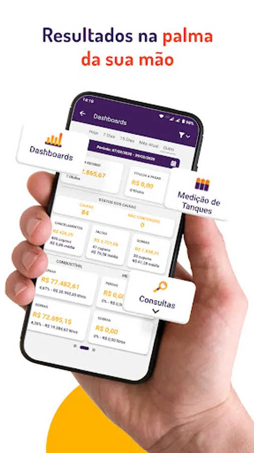 Release credit limit for your consumer, change the price of fuel at the pump directly in the app, check accounts payable and receivable, measure tanks, centralized view of suppliers, integration with Linx systems and reduce errors in cash flow. The system can be adapted to the needs of the business with customized features, allowing the customer to have only the vision they consider important for decision making.
