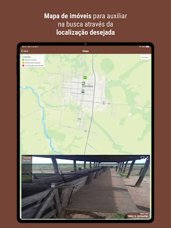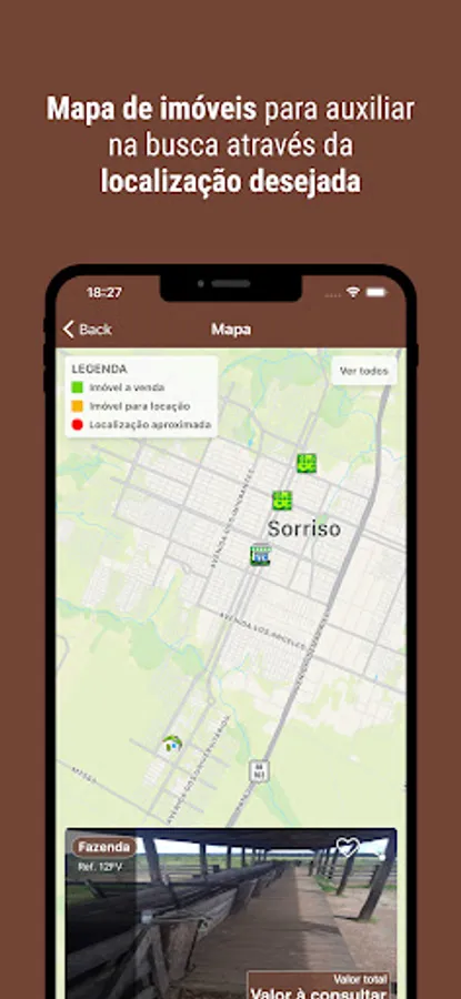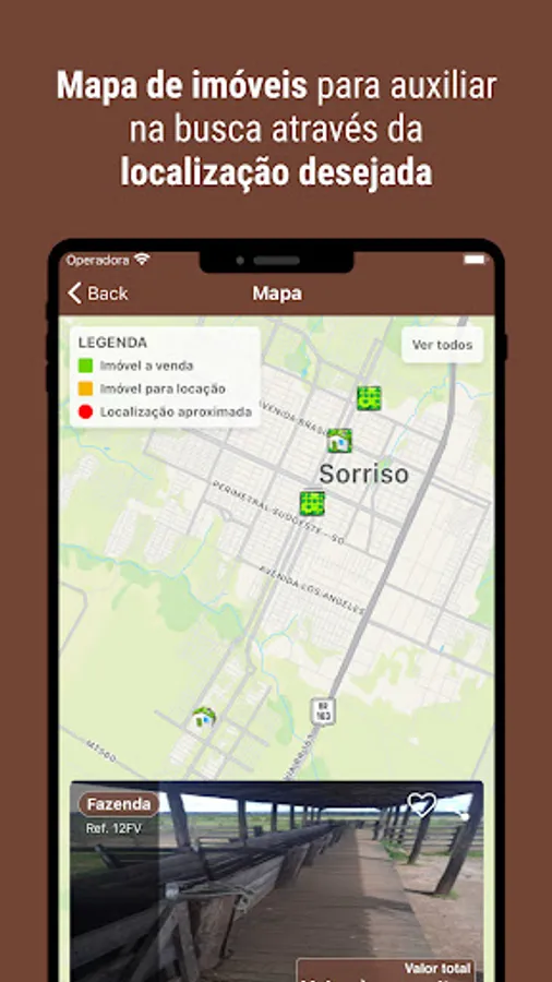 * Map with all properties and icons differentiated according to the type of property to assist in the search for the desired location;
