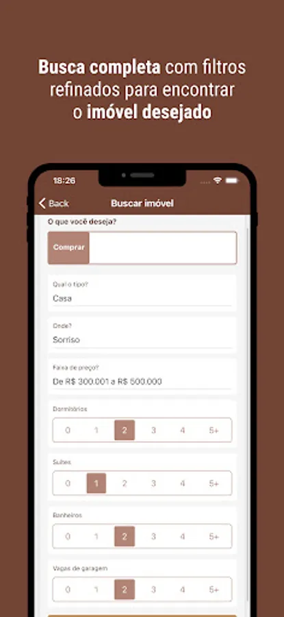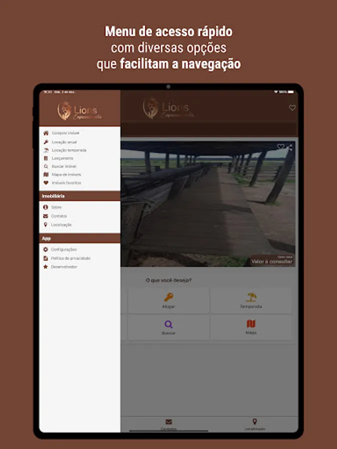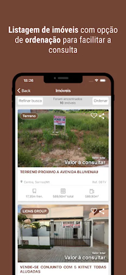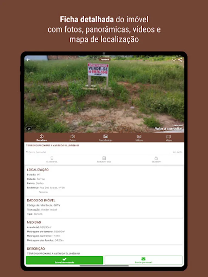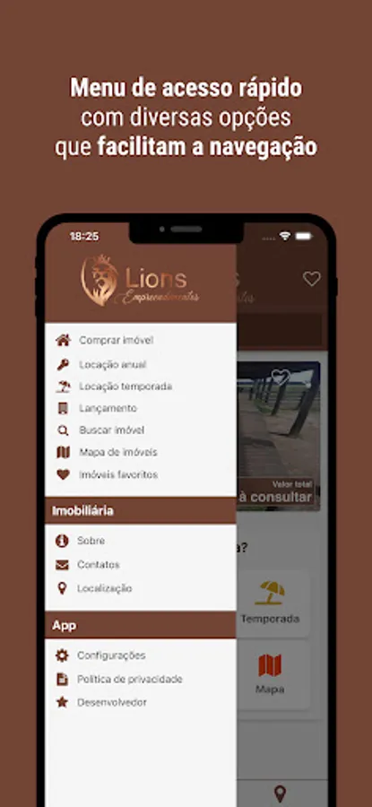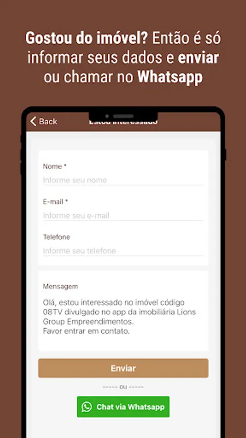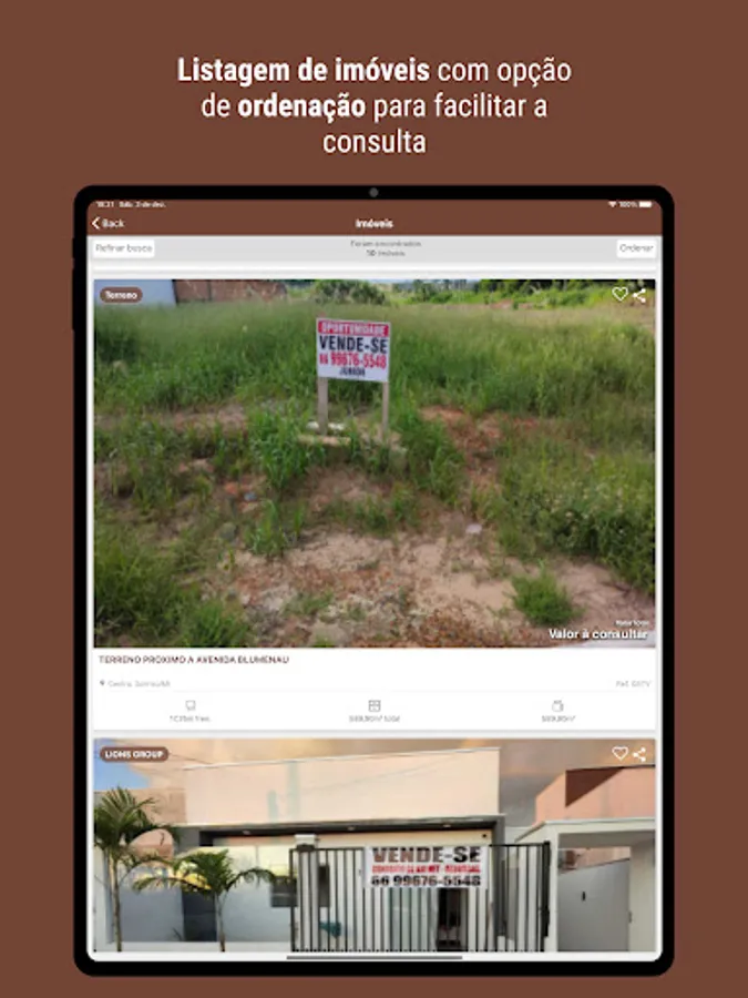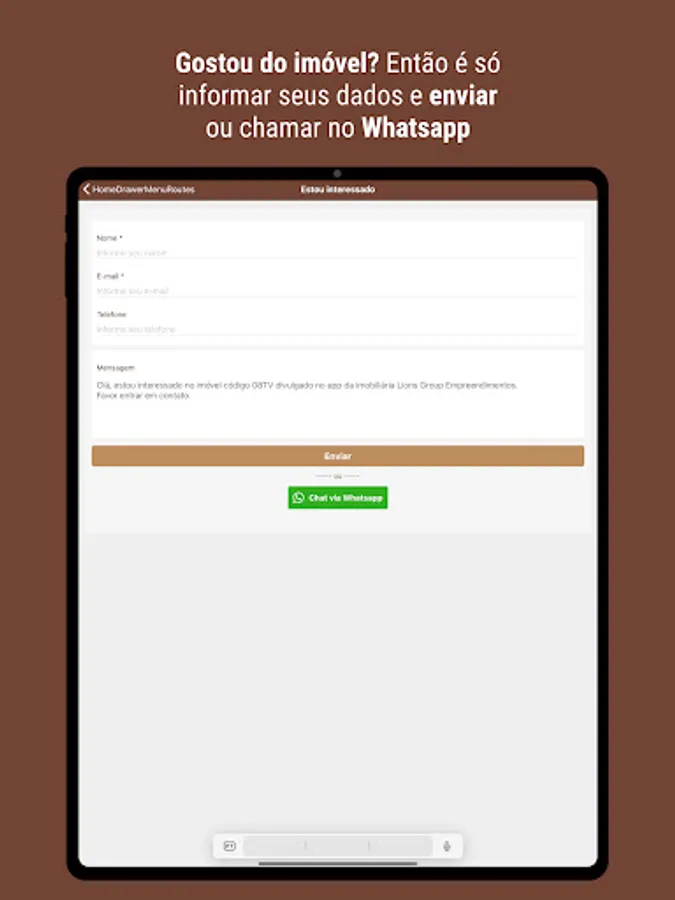 One of the main features and differences of our app in relation to our website and other apps on the market is that our app works online and offline. So, you can access the app anytime and anywhere with or without internet access, saving your data package. In addition to several other advantages such as the map with all the properties to facilitate the search for the desired location, a virtual tour to better understand all the areas of the property without leaving home and also the practicality of being able to choose your ideal property in the palm of your hand and get in touch via WhatsApp to request more information about the desired property.