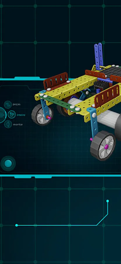 32 assembly practices, associated with interdisciplinary content, with detailed and structured information and scenes, for visualization by phases of the parts, with a control screen for closer and better understanding of the assembly from all angles.