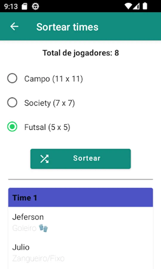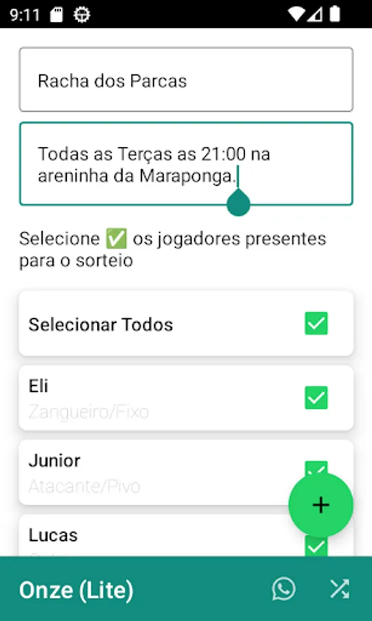 Onze Lite is a simple app where you can add your friends to a list and draw football teams