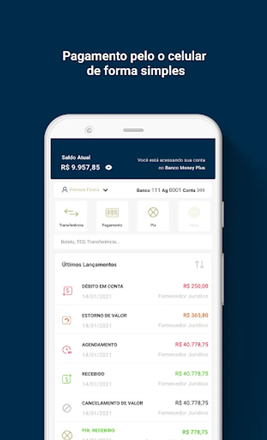 A complete account, with payments, transfers, PIX, ESCROW accounts, bookings, operators, approvals and everything else.