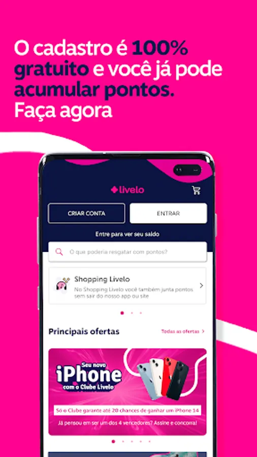 Only at Livelo can you redeem products, earn cashback, check your balance and even have access to exclusive benefits and promotions in an easy and fast way! Just download for free!