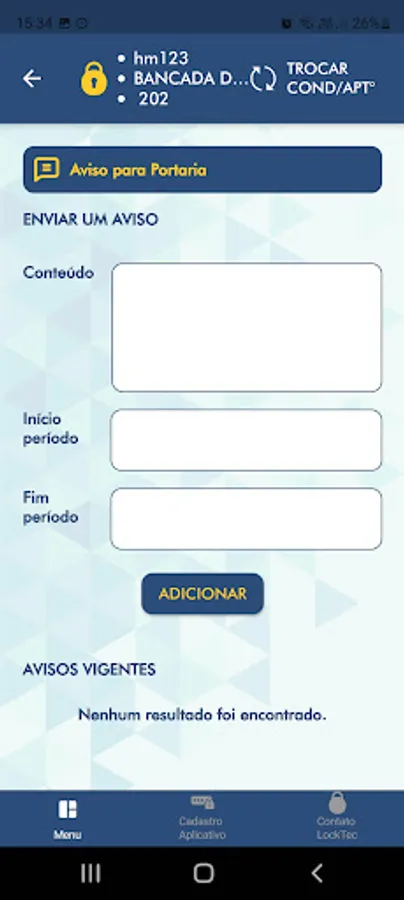 If RESIDENT has the property by the head of bond, informed at the time of initial registration in the Remote Ordinance Locktec system, this can edit all data for all users and registered vehicles on your property, as well as enter new entries.