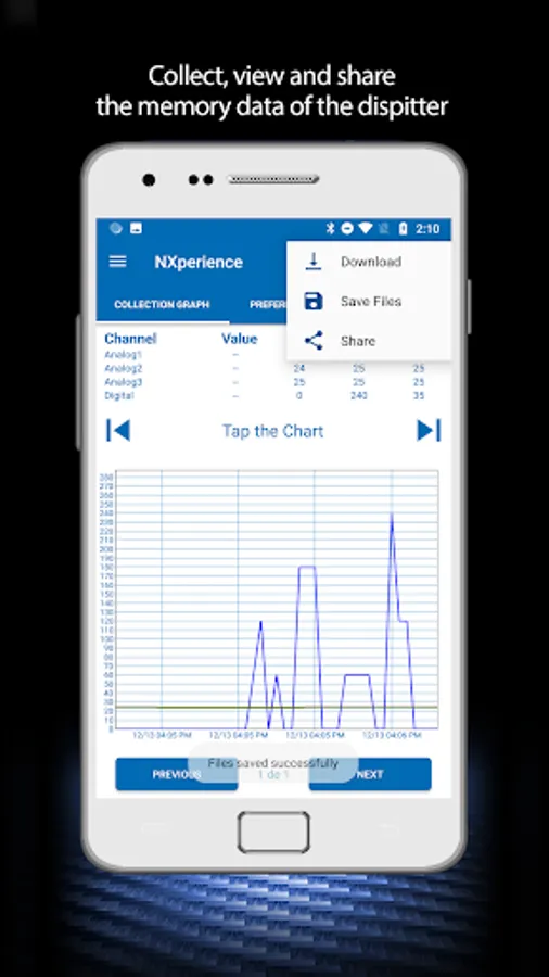 Information gained through NXperience Mobile can be exported directly from the smartphone to the cloud or to any computer, allowing the creation of reports and graphs that will facilitate analysis of the data. Download data, configure devices, manipulate and manage information anytime, anywhere.