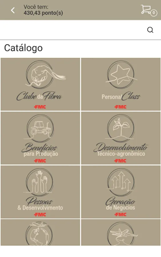 In this app, aimed at Agricultural Producers in Brazil, it is possible to redeem products, services and training to add to your business.