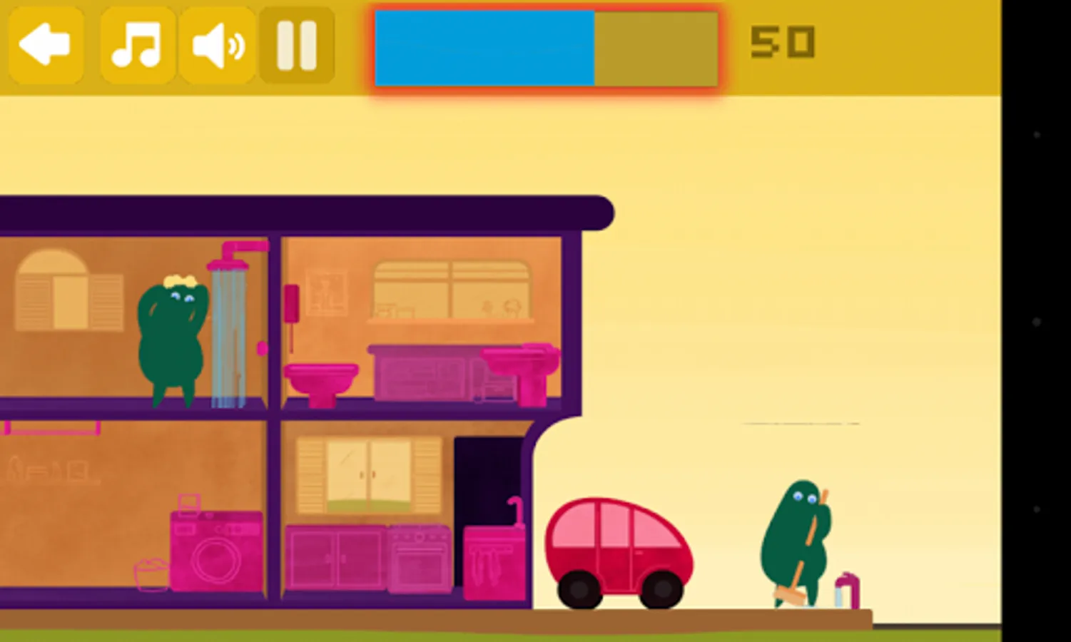 In EcoCasa the player must use the mouse or tap to remove characters that make the misuse of water. This character is then replaced with a new one that is the correct use of water in various everyday situations. The player's goal is to get the water from the water tank to last as much as possible, earning points according to the playing time.