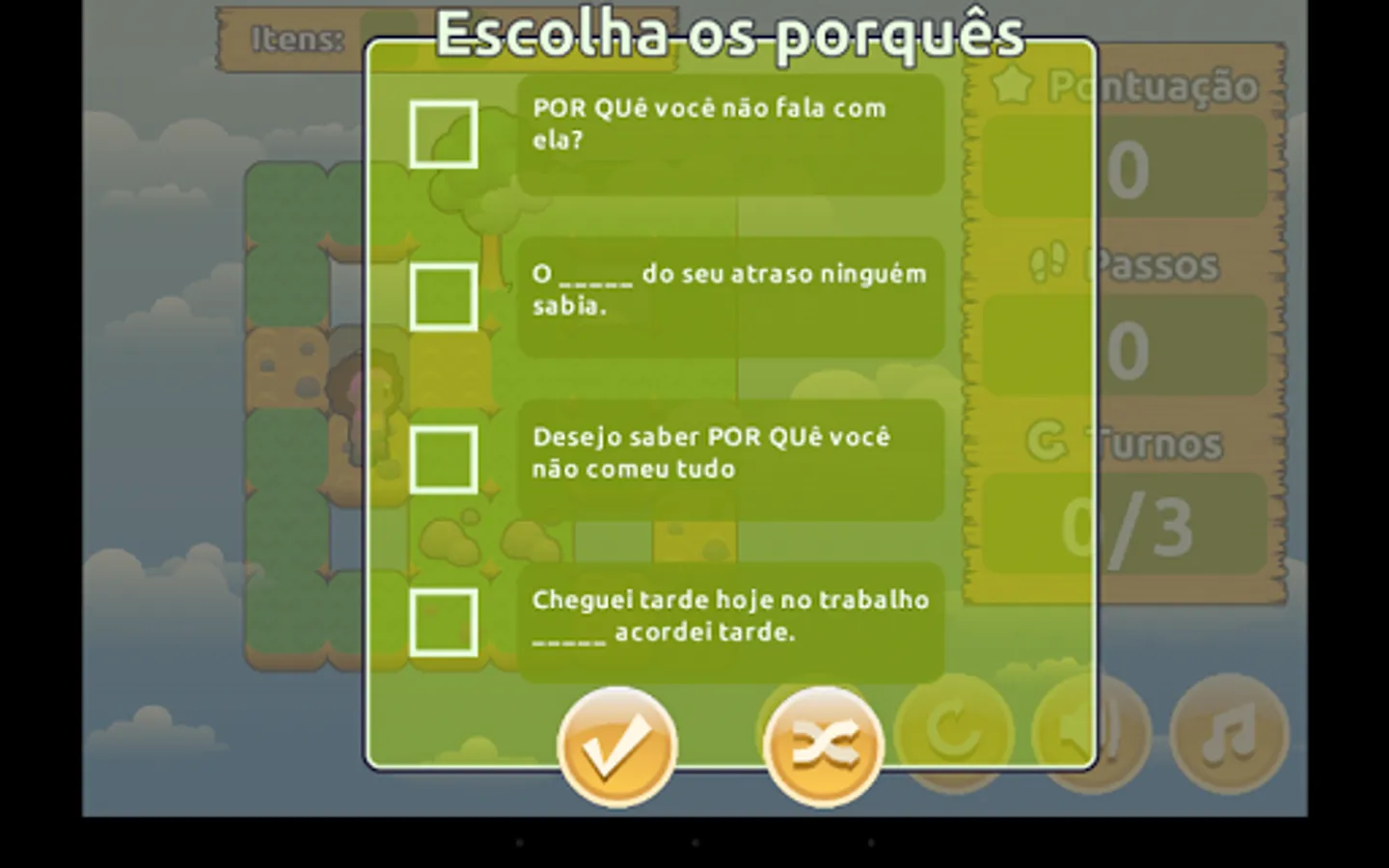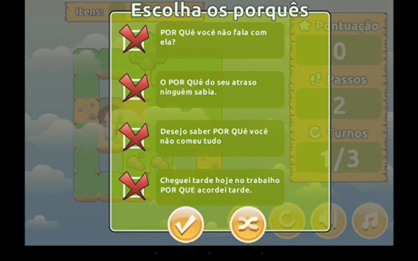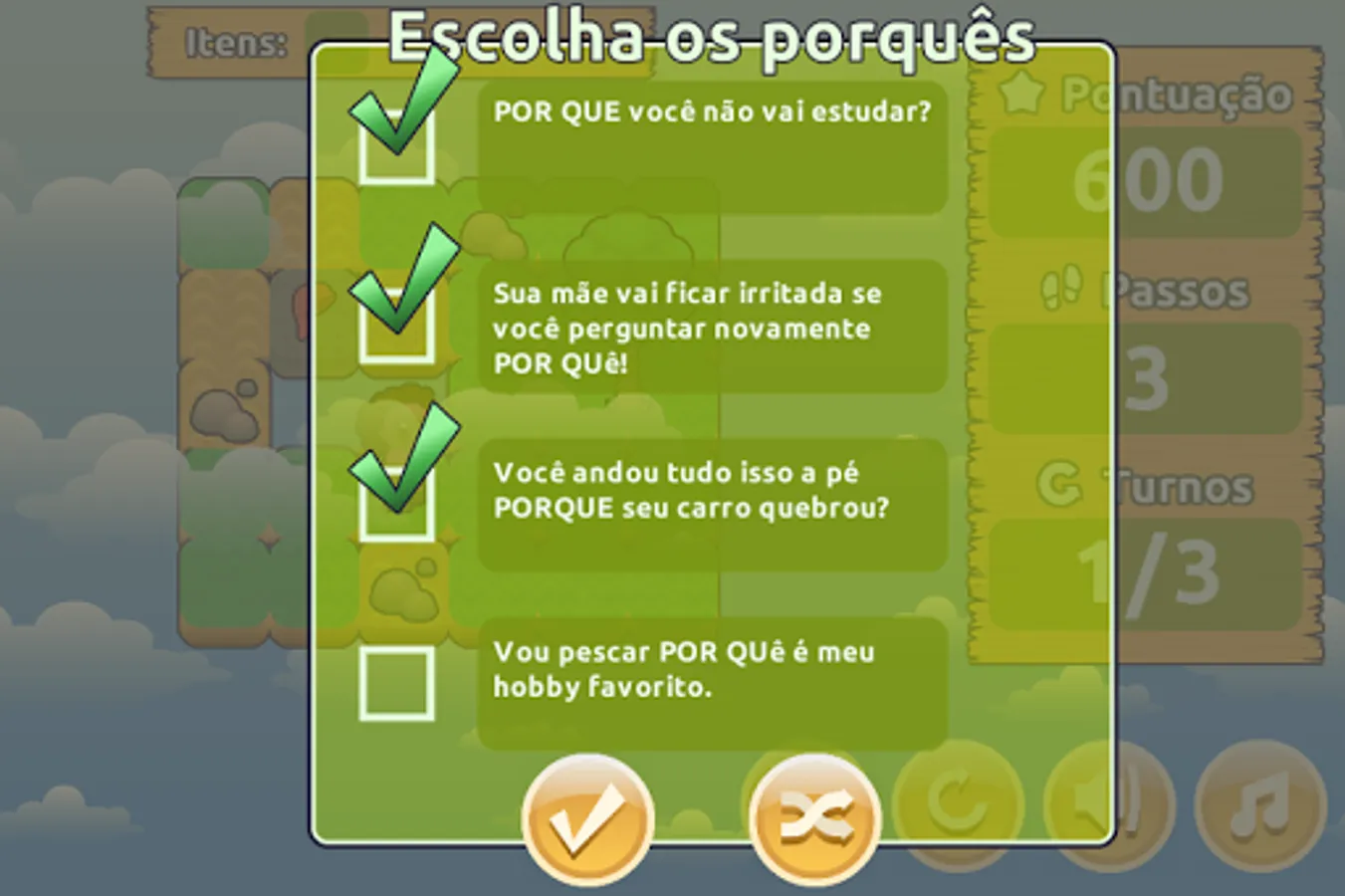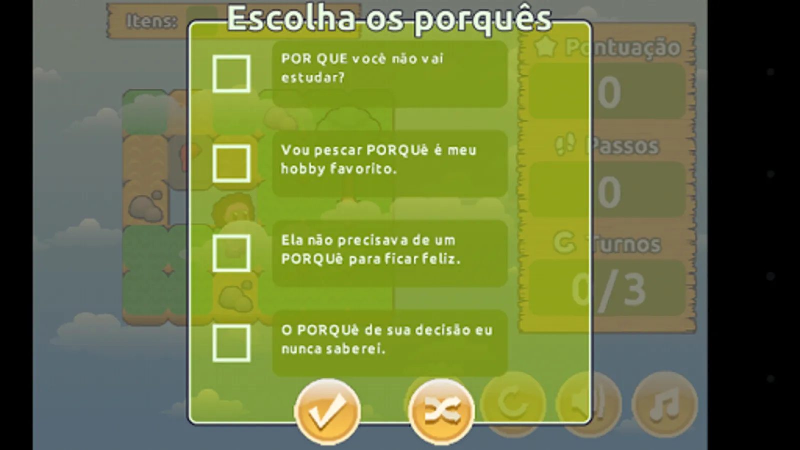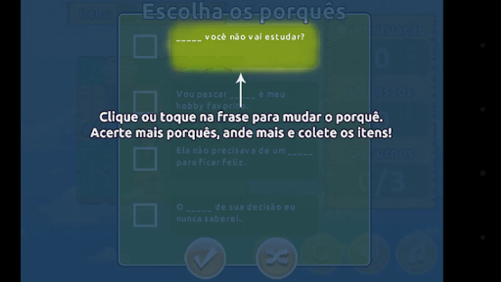 This fun adventure player should help Sophia to collect items from different creatures of the rich Brazilian folklore! To do this the player must correctly use the four "whys" of the Portuguese language and always be aware of how many shifts has yet to finish your mission!