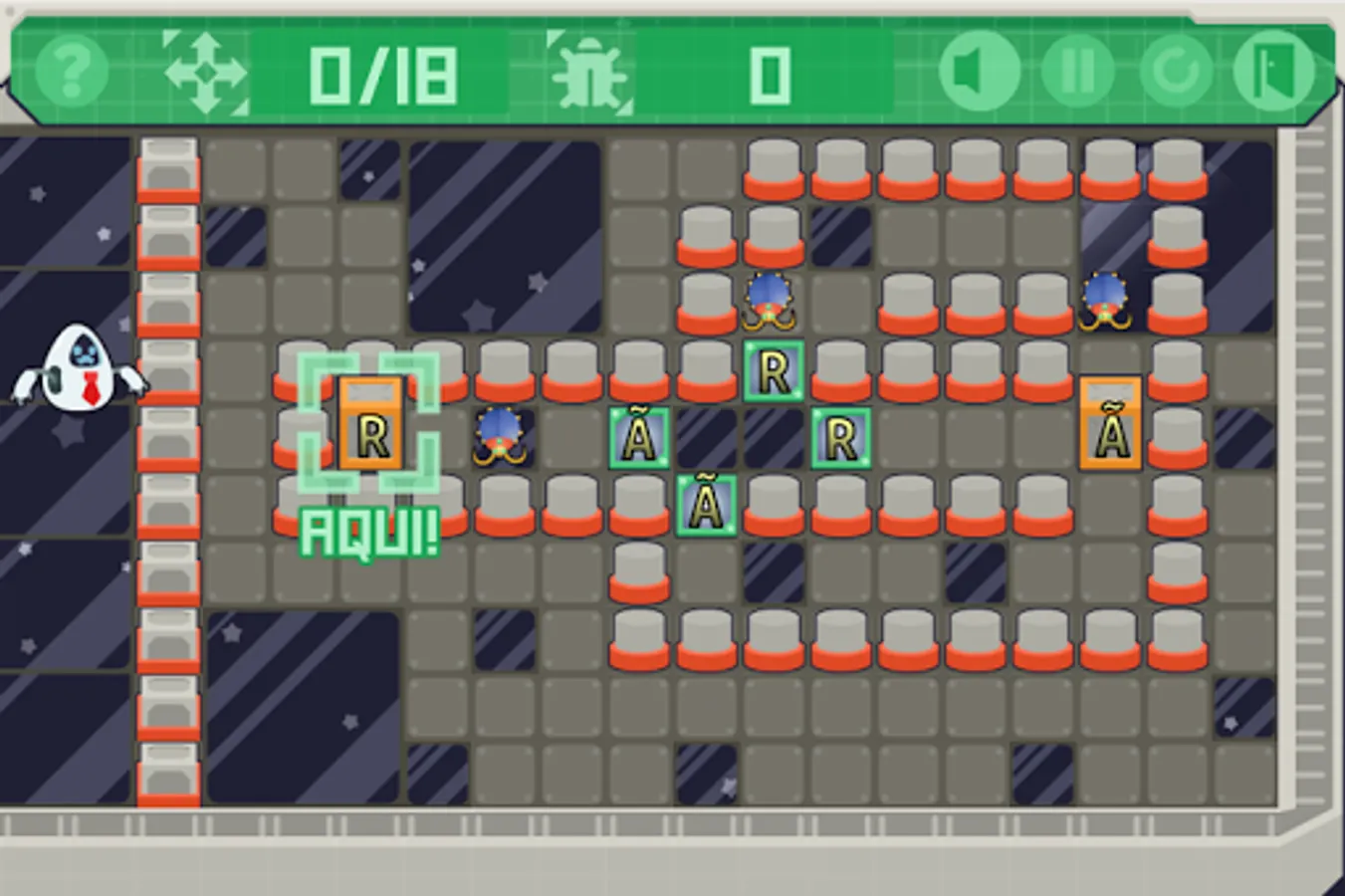 level features a word that must be assembled by placing the boxes in their respective slots.